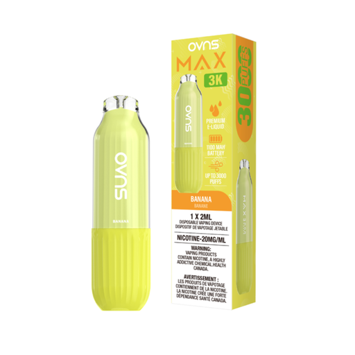 OVNS Max 3K β Banana Disposable Vape | 20mg | 20ml OVNS Max 3K β Banana serves up the smooth, creamy flavor of perfectly ripened bananas in every p...