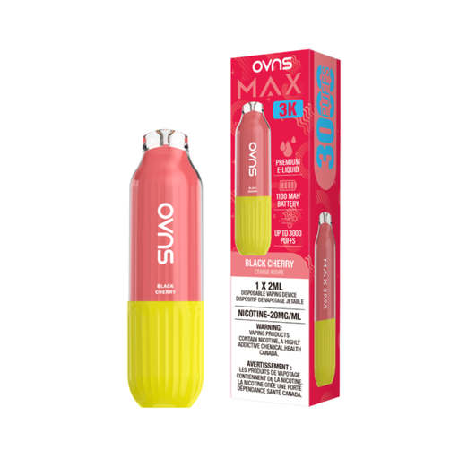 OVNS Max 3K β Black Cherry Disposable Vape | 20mg | 20ml OVNS Max 3K β Black Cherry delivers a rich and bold cherry flavor with deep, dark fruit no...