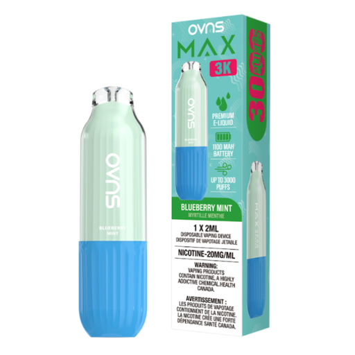 OVNS Max 3K β Blueberry Mint Disposable Vape | 20mg | 20ml OVNS Max 3K β Blueberry Mint blends the rich, succulent sweetness of ripe blueberries wi...