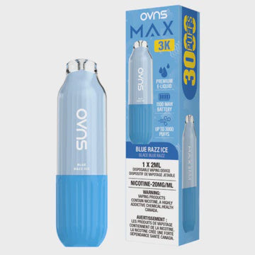 OVNS Max 3K β Blue Razz Ice Disposable Vape | 20mg | 20ml OVNS Max 3K β Blue Razz Ice delivers the tangy, vibrant flavor of blue raspberries...