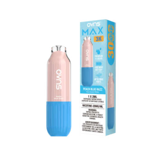 OVNS Max 3K β Peach Blue Razz Disposable Vape | 20mg | 20ml OVNS Max 3K β Peach Blue Razz delivers a delightful blend of juicy, sweet peaches with ...