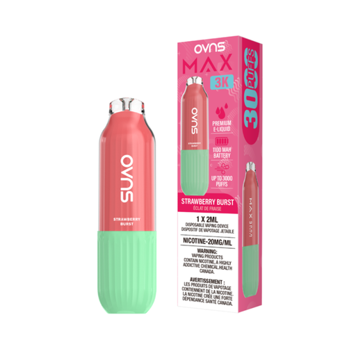 OVNS Max 3K β Strawberry Burst Disposable Vape | 20mg | 20ml OVNS Max 3K β Strawberry Burst delivers a juicy explosion of ripe strawberries with ev...