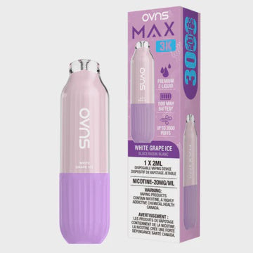 OVNS Max 3K β White Grape Ice Disposable Vape | 20mg | 20ml OVNS Max 3K β White Grape Ice delivers the sweet, juicy flavor of ripe white grapes wit...